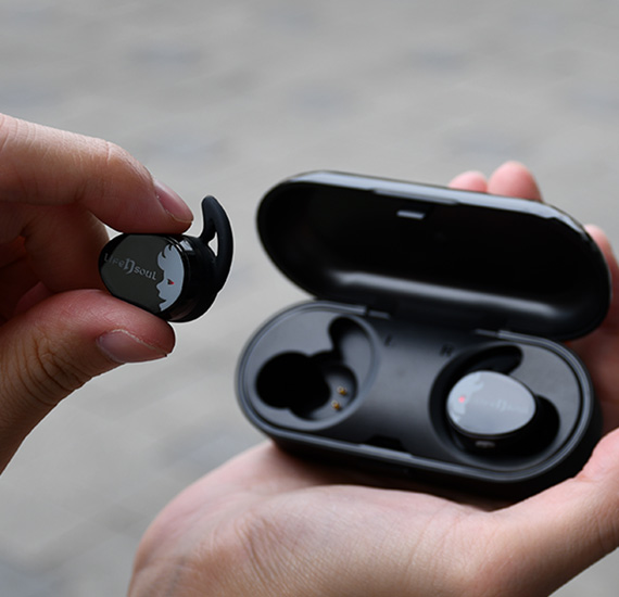 Anti-allergic ear fins help the earbuds steadily stay on your ears.