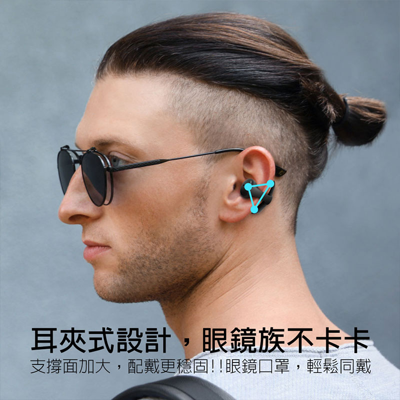 三點定位不卡耳朵,眼鏡族的首選非耳掛設計不卡耳朵,即便戴眼鏡、口罩也舒適無礙。搭載「三點定位」技術,無論日常通勤或跑步運動皆穩固不脫落,久戴依舊無感。