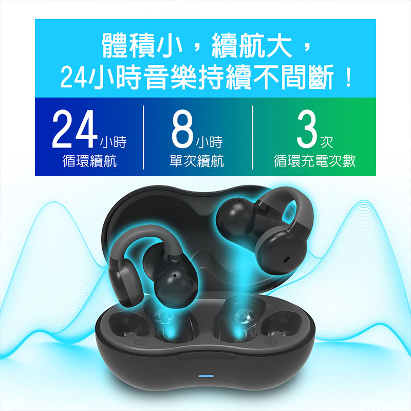- 創新耳夾式設計,耳朵不疼痛、運動無負擔!